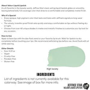 JEFFREE STAR VELOUR LIQUID LIPSTICK IN HIGH SOCIETY PASTEL MINT GREEN LIPCOLOR