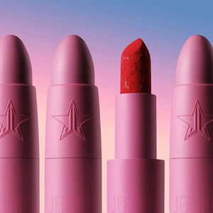 The Velvet Trap lipstick by Jeffree Star is a richly pigmented, single stroke luxurious opaque formula, that hugs the lips in a lightweight, velvet matte finish. Smells like vanilla crème brûlée.