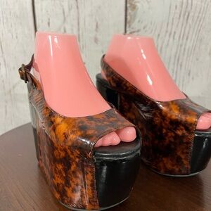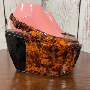 JEFFREY CAMPBELL BRANDIE black brown patent leather platform sandals 7.5 GUC