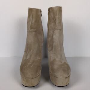 JEFFREY CAMPBELL Beige Suede Bratz Bootie Platform Heeled Leather Women's 8.5