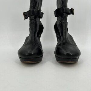JEFFREY CAMPBELL Black Leather Platform Ankle Strap Booties Heels Shoes Size 9