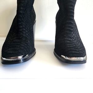 JEFFREY CAMPBELL Cromwell Black Suede Snake Boots Size 7.5