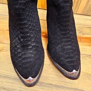 JEFFREY CAMPBELL Cromwell Black Suede Snakeskin Embossed Boots Size 7.5