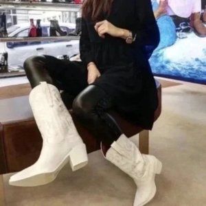JEFFREY CAMPBELL Dagget Western Boot in White Combo Size US 7
