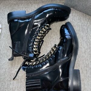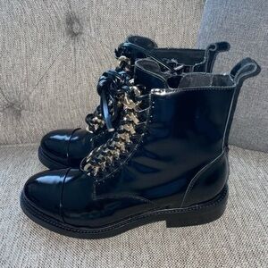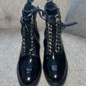JEFFREY CAMPBELL Damon Lace-Up Bootie Black Box Gold Leather Size 8 US