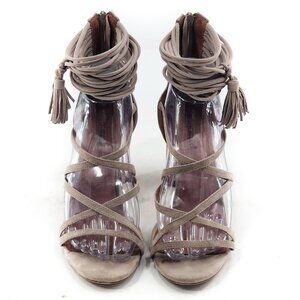 JEFFREY CAMPBELL Despina Strappy Sandal In Taupe Tassels Open Toe Ankle Strap
