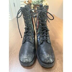 JEFFREY CAMPBELL Distressed Leather Combat Boots Aztec Foldover 2-Way Size 7