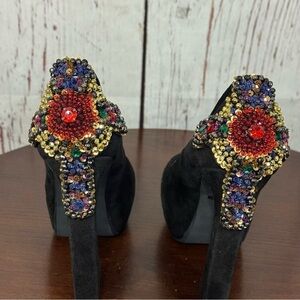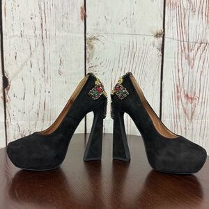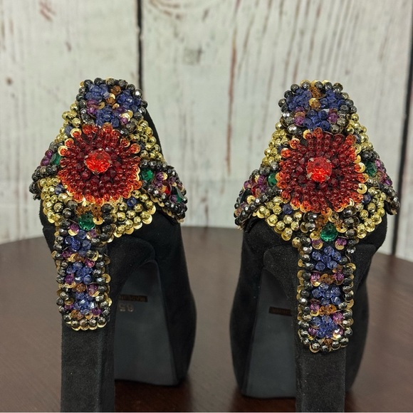 JEFFREY CAMPBELL EVA CROSS black suede platform pumps with sequins & Beads 6.5