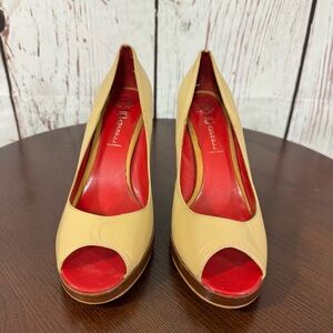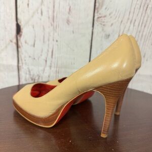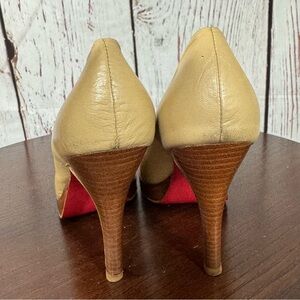 JEFFREY CAMPBELL Elegant calf leather Peep-Toe Heels - Tan and Red 7.5 GUC