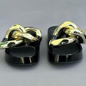 JEFFREY CAMPBELL Epirus Slide Sandal in Black Patent Gold 6 US Size NEW