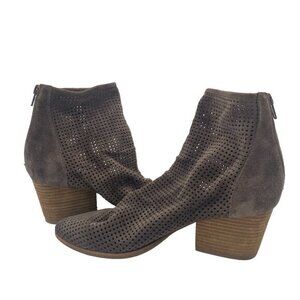 JEFFREY CAMPBELL Jenelle Taupe Suede Laser Cut Heel Bootie Womens SZ 9 Point Toe