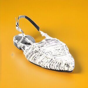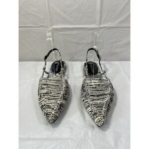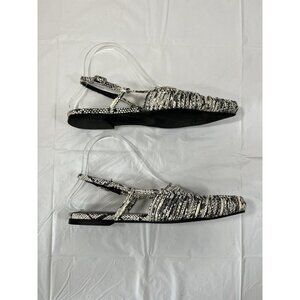 JEFFREY CAMPBELL Myron Black White Flat Python Sling back Sandals Shoes Size 7.5