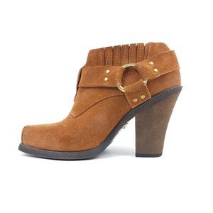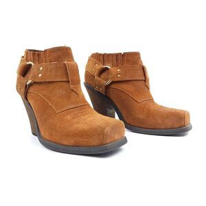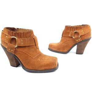 JEFFREY CAMPBELL Rumi Suede Leather Harness Booties Horse Girl Western Boho Tan