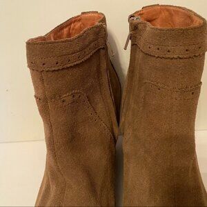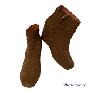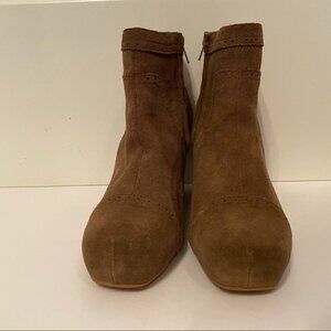 JEFFREY CAMPBELL SHOES BOOTS ANKLE BOOTIES BROWN SUEDE LEATHER WEDGE ZIP