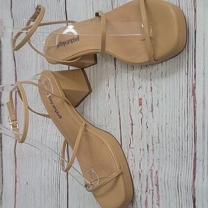 JEFFREY CAMPBELL Tan Strappy Block Heel Platform Sandals Size 8.5