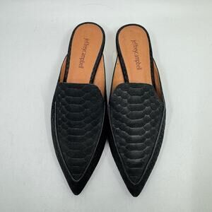 JEFFREY CAMPBELL Vionit Pointed Toe Black Leather Snakeskin Wood Heel Mule Loafers