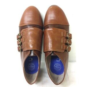 JEFFREY CAMPBELL WOMEN BROWN LOW HEEL LEATHER SHOES WITH BUCKLE DETAILS SIZE 6M