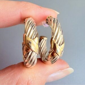 JEFFREY LEVIN 14k Gold & Sterling Silver Two-Tone X Hoop Twisted Cable E…