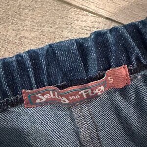 The JELLY & PUG toddler girls size 5 denim and lace flare jeans are a stylish addition to any little girl's wardrobe. Made with soft denim fabric in a classic blue color, these flared jeans feature delicate lace accents for a feminine touch. The JELLY & PUG brand ensures quality and attention to detail in this adorable and trendy piece of clothing for young girls. Perfect for adding a pop of style to any outfit, these jeans are both fashionable and comfortable for everyday wear.