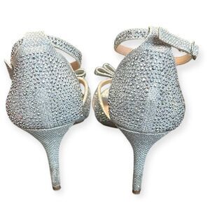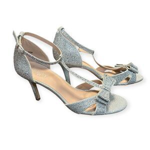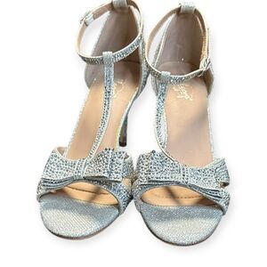 JELLYPOP Women’s Silver Glitter Rhinestone Bow Keelin High Heel Sandals Size 10M