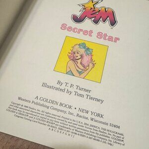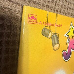The Jem Secret Star Golden Book from 1986 by Hasbro is a vintage paperback storybook that belongs to the Golden Books series.