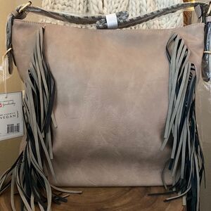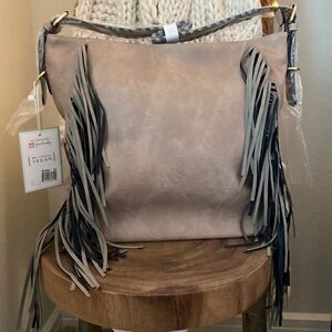 This stylish distressed Hobo bag is a fashionable way to keep all of your precious goods and trinkets safe! It’s unique and eye-catching fringe detailing adds a splash of flair to any look,and it’s spacious interior makes sure you never get weighed down.