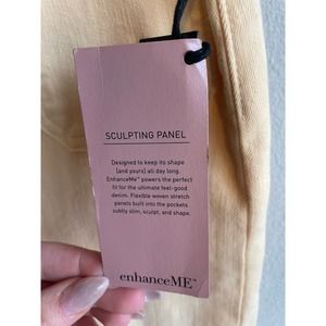 Details: Cropped hems bring a chic update to trouser-inspired wide-leg jeans featuring a contoured waist and enhanceME shaping panels that subtly slim and sculpt.
