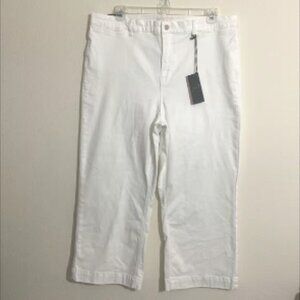 JEN7 by 7 for All Mankind Cropped Wide Leg Distressed Hem White Jeans Size 18