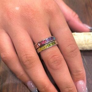 JEN HANSEN RAINBOW CHANNEL RING STERLING SILVER CUBIC ZIRCONIA.