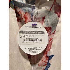 Brand new with tags JENNARATION Boutique floral tunic in size 2XL. Creamy ivory base with vibrant multicolor floral print, button-neck accent, and flowy silhouette. Originally retailed for $39.