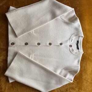 With its structured silhouette that subtly cinches at the waist and gently flared sleeves, this iconic cardigan adds instant polish to any outfit. The tailored fit offers versatile styling options, while the luxurious wool-cashmere blend provides ultimate comfort.