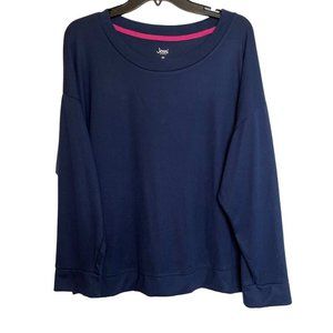 Top: Scoop Neck, solid navy blue, banded neck & cuff, 56 1/2" bust, 25 1/2" length