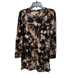 JENNI WOMENS XLARGE LONG SLEEVE SUPER SOFT FALL/WINTER SLEEP SHIRT TIEDYE PRINT BLACK TAN