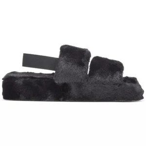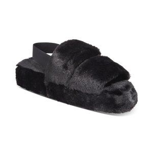 Soft, plush and totally cozy, an elastic back strap helps to secure the comfort of these faux-fur slippers from Jenni.