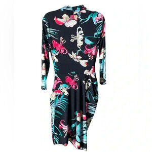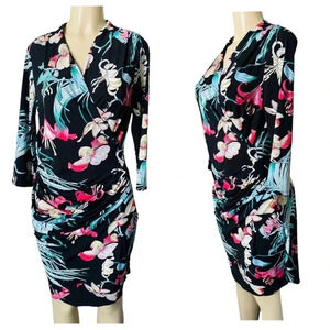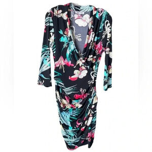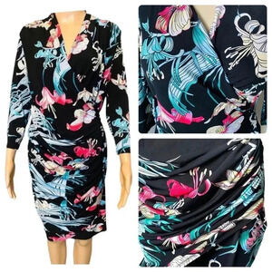 JENNIFER LOPEZ | Black Colorful Floral Faux-Wrap Dress Size L