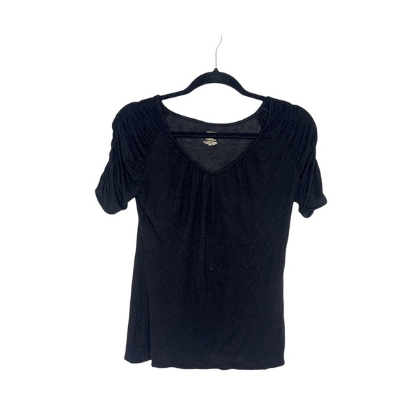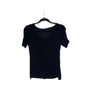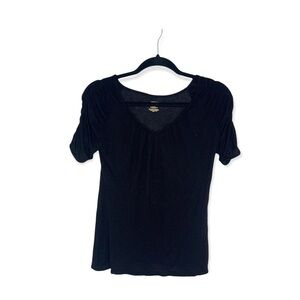 JENNIFER LOPEZ Black V-Neck Short Sleeve Top with Shoulder Ruching S