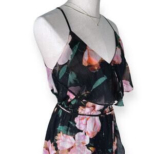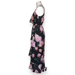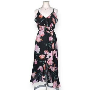 JENNIFER LOPEZ Floral FauxWrap Midi Dress Shimmer Cocktail Ruffle Tier Cascade 2