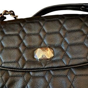 JENNIFER LOPEZ J Lo Black Embroidered Bag with Chain and Faux Leather.