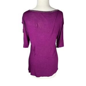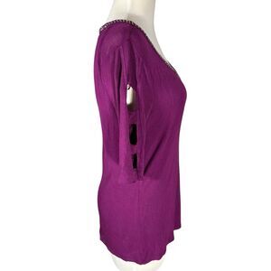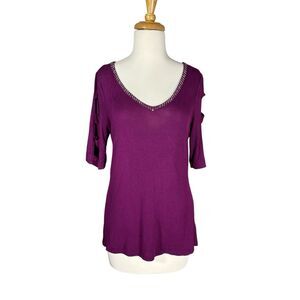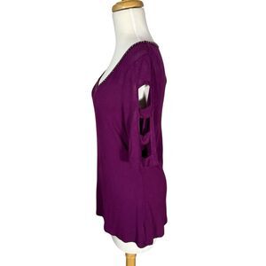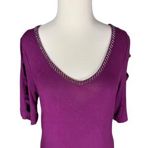 JENNIFER LOPEZ Jeweled V-Neck Purple Cross Strap Sleeve Blouse Sz S