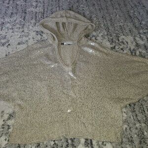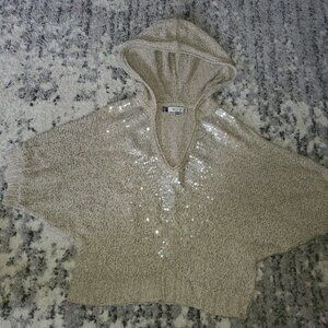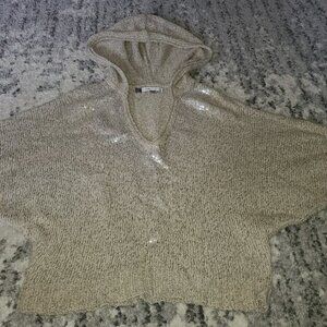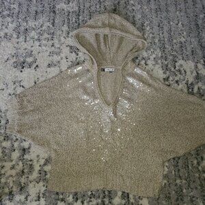 JENNIFER LOPEZ SEQUIN KNIT HOODIE BATWING SLEEVE