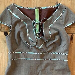 JENNIFER Reale Design Brown Plaid Tunic Mini Dress Boutique Designer 6