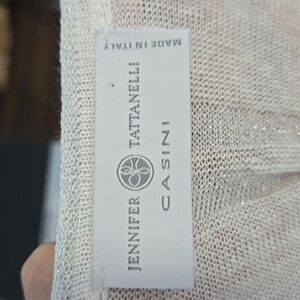 JENNIFER TATTANELLI Casini White Metallic 3/4 Sleeve Linen Sweater SZ L (46 IT). Gorgeous lightweight Italian designer sweater. Florence and Palm Beach couture. Features: Rolled hem lines. Linen viscose blend.