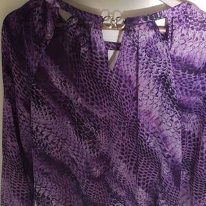 Jennifer Lopez sheer purple leopard print blouse with gold detail in back/ elastic around waist and wrists