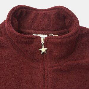 JENNY BUCHANAN WOMAN ~ Women's plus-size 2X fleece jacket with stand-up collar and zip closure. Burgundy/maroon color. Pockets and star medallion as a zipper pull.