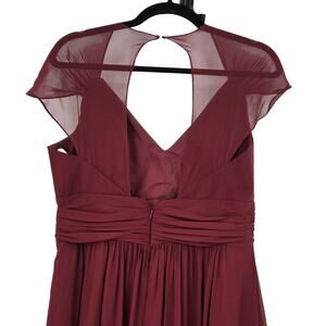 JENNY PARKHAM SZ 8 LUX CHIFFON MAROON V-NECK OPEN BACK BRIDESMAID MAXI DRESS