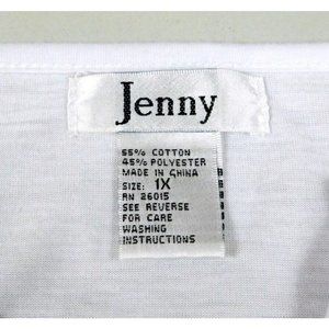 JENNY Womens Sleeveless Summer Top 1X White Cotton Blend Accent Stitching