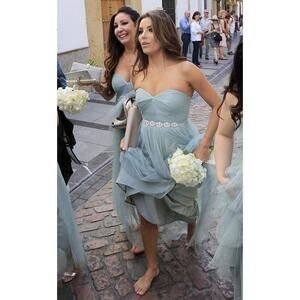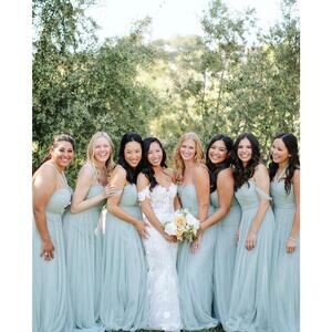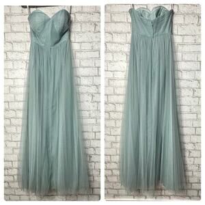 JENNY YOO Blue Dress Annabelle Bridesmaid Maxi Tulle Convertible Blue Green 2