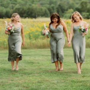JENNY YOO Claudia Moss Green Satin Midi Dress