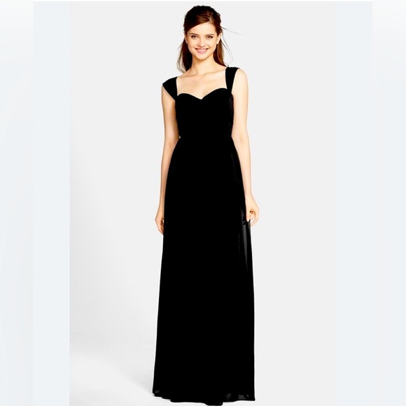 JENNY YOO- Leah Chiffon/Silk Black Gown, Size 2