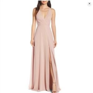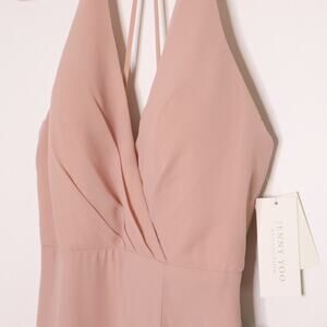 JENNY YOO Pleated Chiffon Maxi Dress Dusty Pink V-Neck Low Back Women's 2